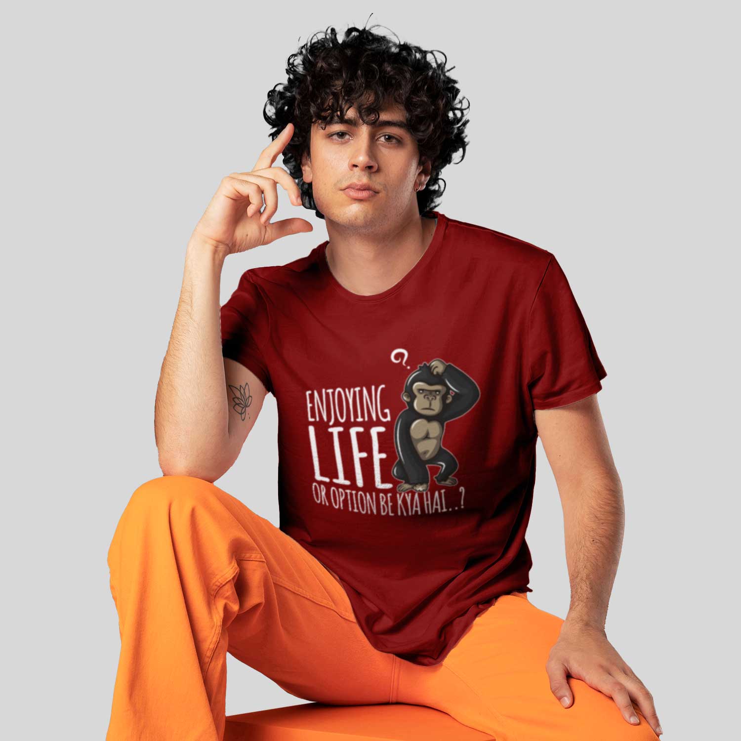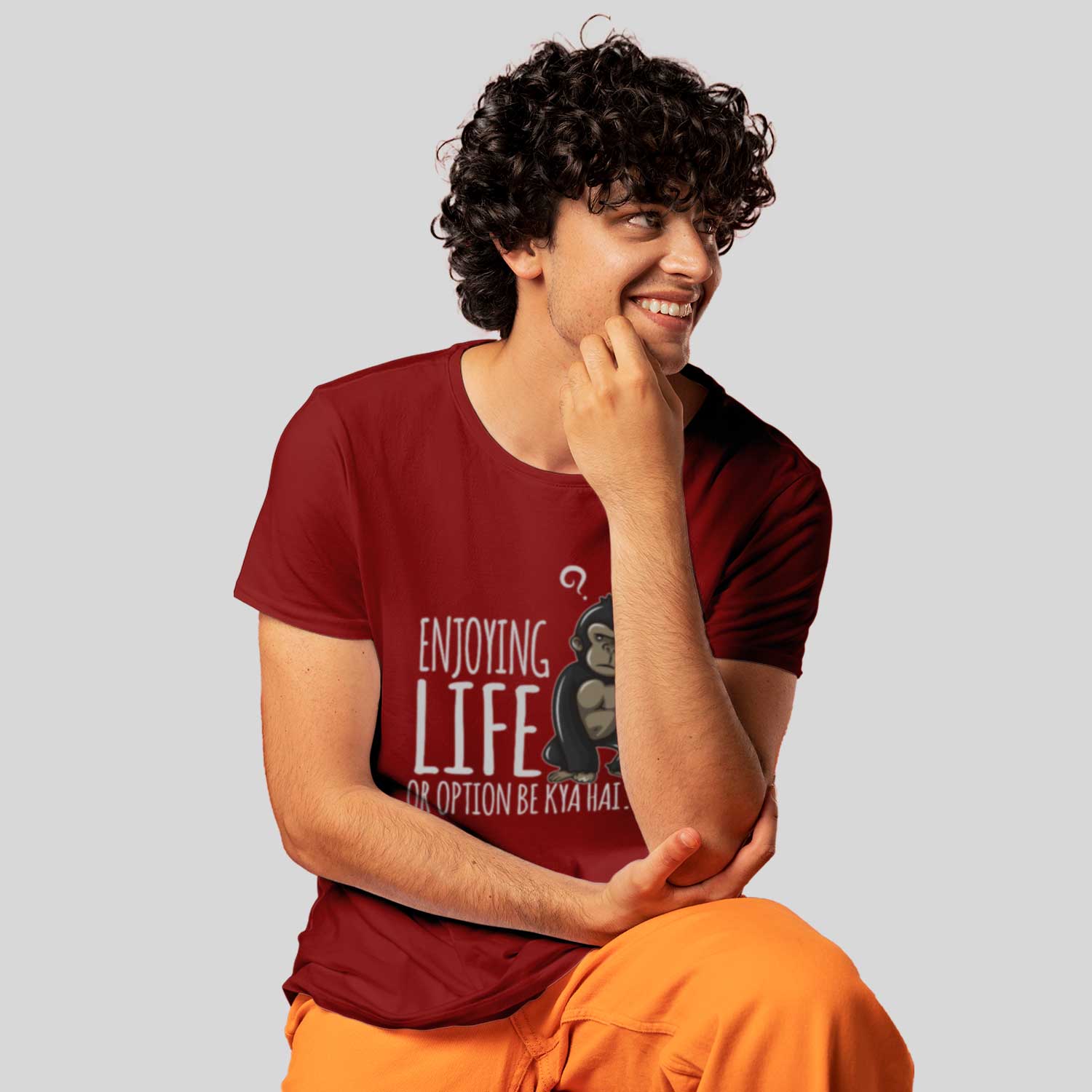 Order Yours Today: Add a touch of humor and positivity to your wardrobe with the “Enjoy Life or Option Bhi Kya Hai” Printed Men’s Round Neck T-Shirt. Shop now and share your carefree spirit with the world!